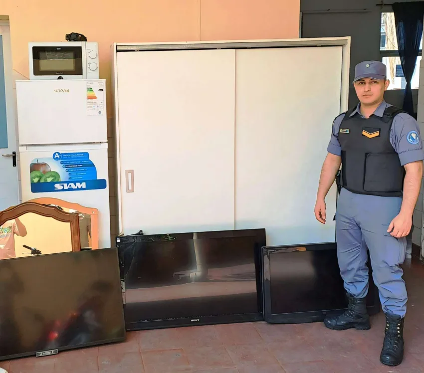 Efectivos de la Comisaría Seccional Primera detuvieron a un joven y recuperaron objetos robados de un inmueble en el barrio centro de esta ciudad, tratándose de tres televisores, un placar, espejos con marco de madera, una heladera y un microondas.