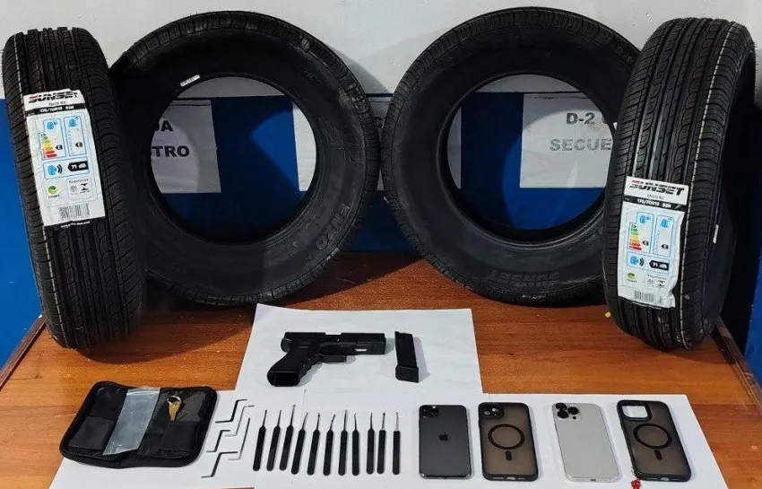 Allí constataron que el mismo trasladaba cuatro cubiertas denunciadas como sustraídas y además portaba una pistola de aire comprimido, un estuche de llaves ganzúas y otros elementos.