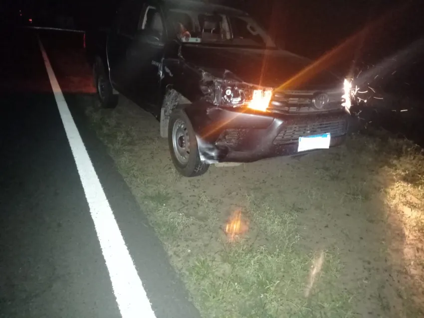Personal de la Sección Juan Gregorio Bazán de la Unidad Especial de Asuntos Rurales (UEAR), verificó un siniestro vial entre un caballo que se cruzó en plena Ruta Nacional 81 y una camioneta Toyota Hilux.