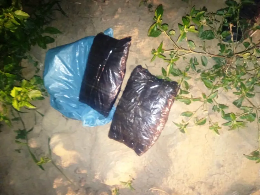 En presencia de testigos, verificaron el contenido y hallaron dos paquetes con una sustancia vegetal característica a marihuana.