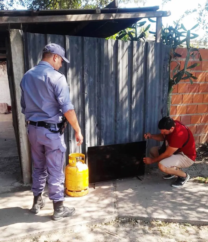 Durante el despliegue de los efectivos, llegaron a una casa del barrio Urbanización España, donde el dueño al tomar conocimiento del caso, entregó de forma voluntaria un televisor Smart Tv y un tubo de gas que compró de buena fe.