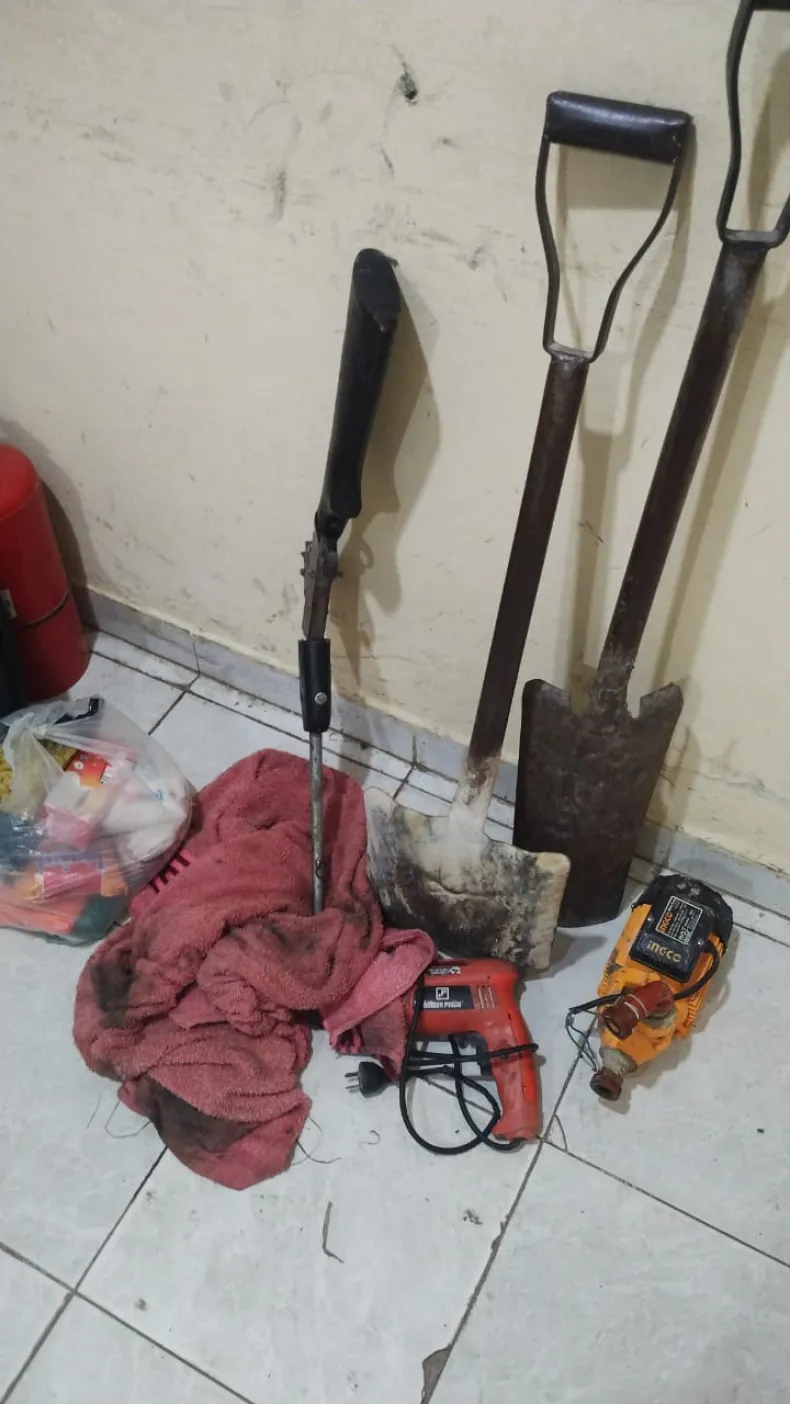 Con los datos obtenidos, se retuvo a tres menores de 15 y 16 años respectivamente, quienes tenían en sus manos un rifle de aire comprimido, una pala ancha, una moladora, un taladro y una bolsa con herramientas.