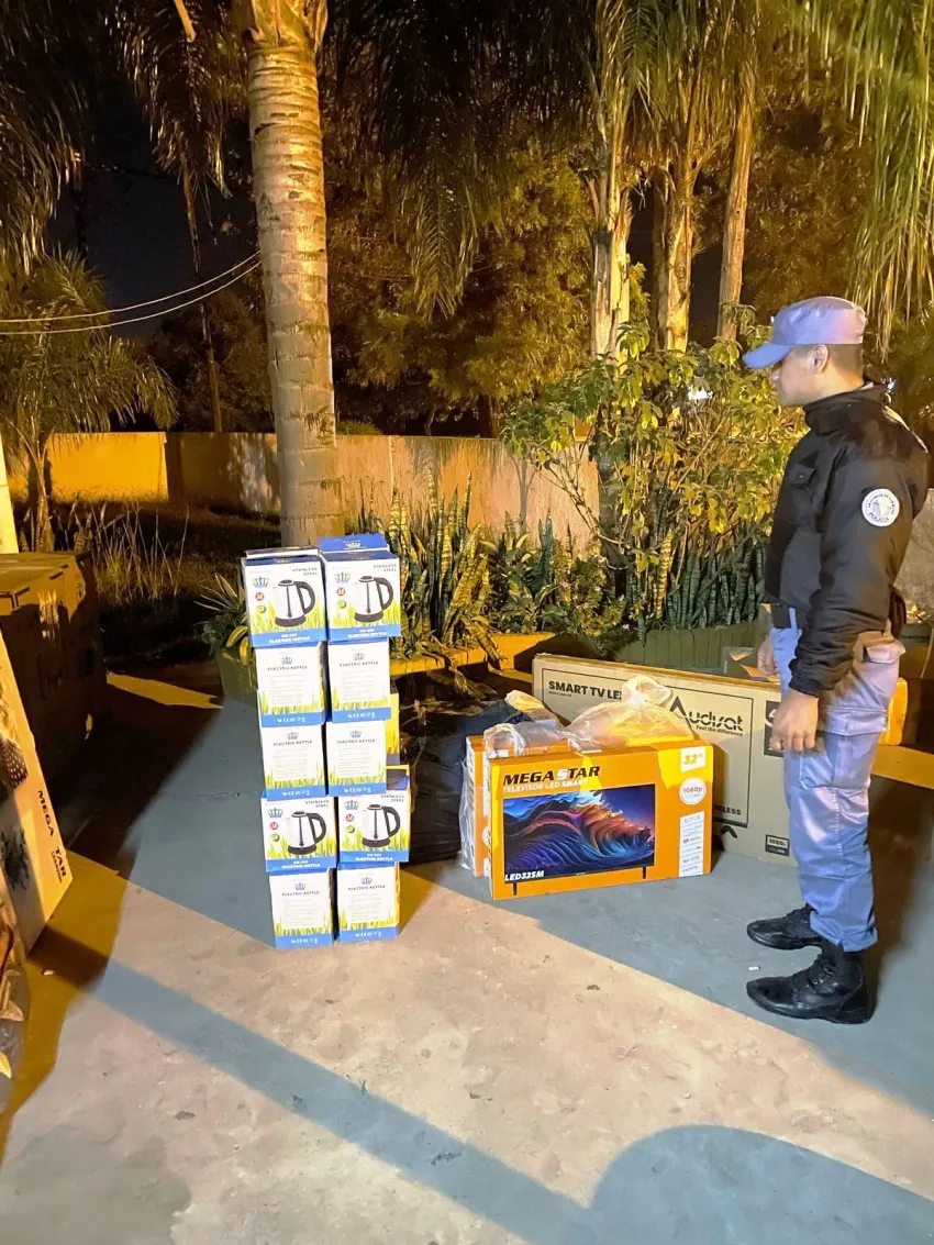 Allí, detuvieron la marcha de un automóvil Citroën C4, conducido por un sujeto de 55 años, que transportaba televisores Smart TV y 34 jarras eléctricas, entre otros elementos, ingresados presumiblemente por pasos fronterizos no habilitados.