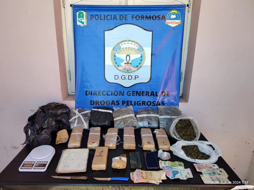 Como resultado secuestraron 8 mil gramos de marihuana, teléfonos, balanzas, cuchillos con restos de droga, anotaciones, dinero y otros elementos utilizados para la actividad ilícita. Además, se detuvo a una pareja de 28 y 29 años respectivamente.