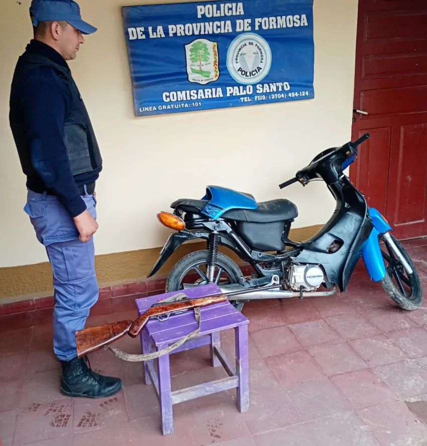 Efectivos de la Comisaría Palo Santo aprehendieron a un sujeto de 24 años, secuestraron una moto Corven Energy de 110 cilindradas y un rifle calibre 22, durante dos allanamientos.