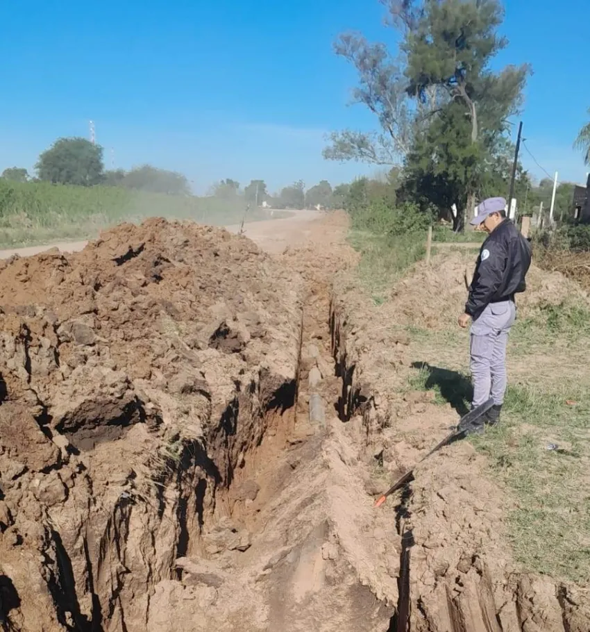 El personal policial verificó un requerimiento que terminó con dos hombres heridos durante el derrumbe de tierra que se produjo mientras colocaban caños de PVC para una red cloacal, en el barrio 8 de Febrero de Comandante Fontana.