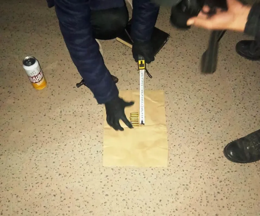 Al identificarlo y realizarle el cacheo preventivo de seguridad, se halló entre sus prendas un cuchillo con vaina de cuero y un revólver calibre 38, con tambor de seis alveolos, cartuchos y envases de bebidas alcohólicas.