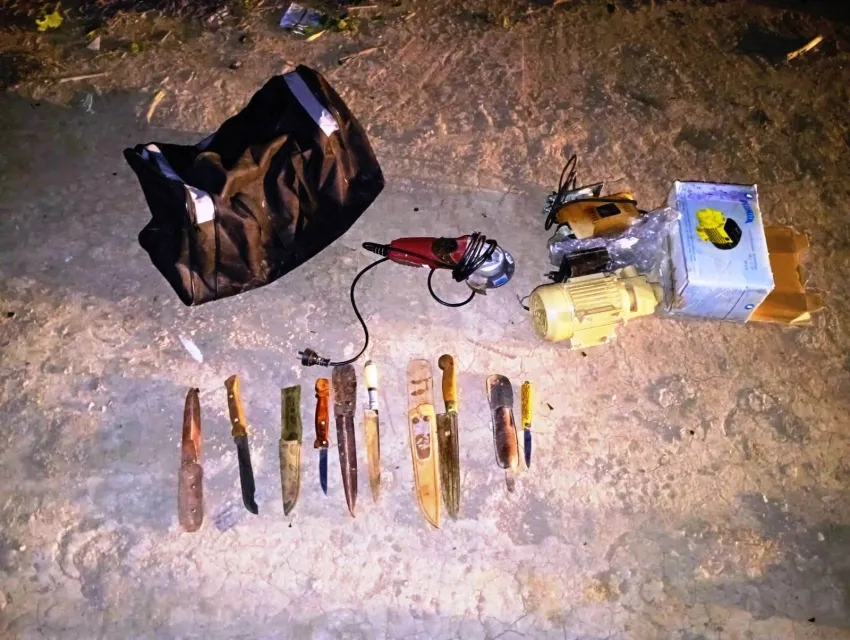 Ante ello, el personal policial se trasladó hasta un sector de malezas del mencionado barrio y tras una minuciosa búsqueda, hallaron ocultos un motor de agua, una amoladora, una caladora y varios cuchillos.
