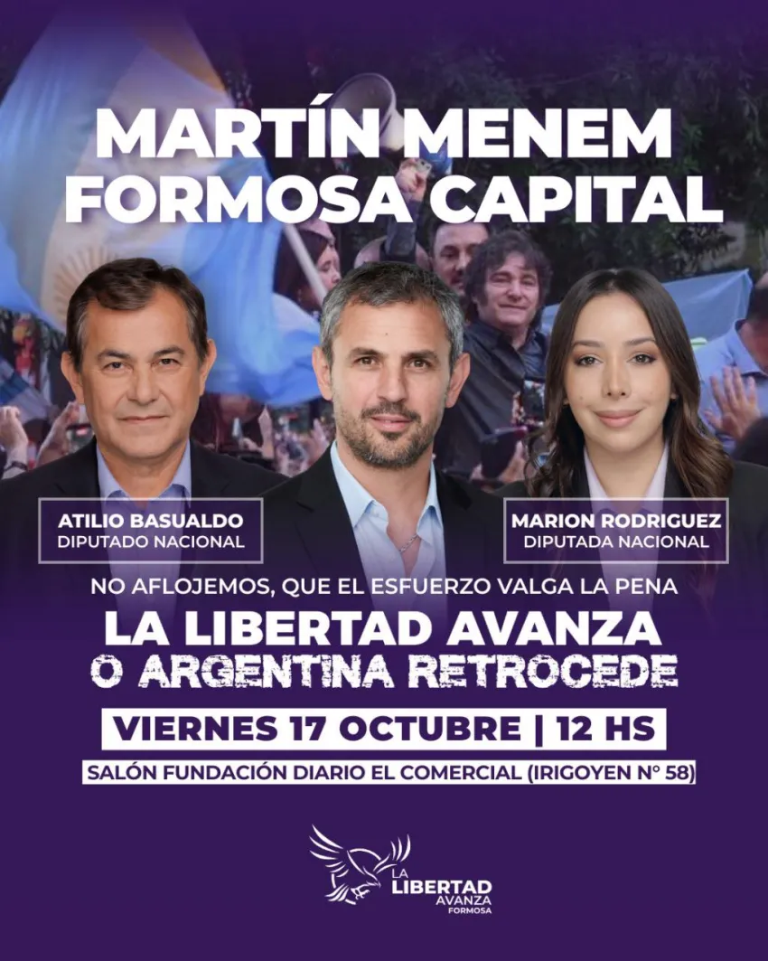 Por su parte, Martín Menem subrayó el liderazgo de Basualdo en el armado provincial y resaltó el trabajo territorial que La Libertad Avanza viene realizando en Formosa.