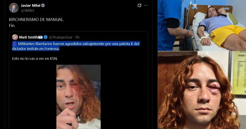 El reposteó de Milei daba cuenta que"Militantes libertarios fueron agredidos salvajemente por una patota K del dictador de Formosa, Gildo Insfrán."