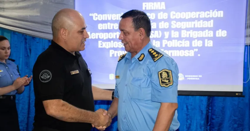 De esta forma, el convenio marco de cooperación entre ambas fuerzas fue firmado entre el jefe de la Unidad Operacional de Seguridad Preventiva de la Policía de Seguridad Aeroportuaria, Inspector Roberto Carlos Abbate, y el director de Cuerpos y Servicios Especiales, Comisario Mayor Ramón Sergio Almirón, acuerdo rubricado por el jefe de la Policía de la provincia de Formosa, Comisario General Juan Moisés Villagra.