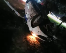 El hombre chocó y abandonó el automóvil . El conductor de un auto Peugeot 207 colisionó contra un alumbrado público, volcó y abandonó el vehículo en el acceso a la ciudad de Clorinda.